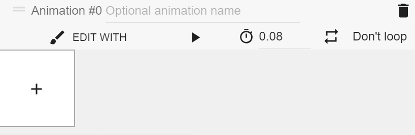 For our first animation, we want to create an Idle animation. Click on the big + button which will open a dialog box to load an asset. Note that we can also add multiples images, but for this animation, we only require one.